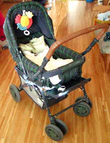 校内にはすでに無事出産が終わったとの報が伝わっていて、前号でも紹介した新生児を紹介する病院のHPをプリントした物が掲示板に張り出されていました。皆から"おめでとう"と言われるのはとても嬉しいものでした。早速、ベビーカーを使って校内を巡ろうとしたのですが、地面が土や石の学校敷地内では揺れがひどく、抱いて歩くのが賢明と分かりました。スウェーデンでは大きなタイヤと共に、フレーム全体がバネのようにしなる乗り心地の良さそうなベビーカーが売っていますが、僕たちの持っている物は舗装された都会向けのようです。