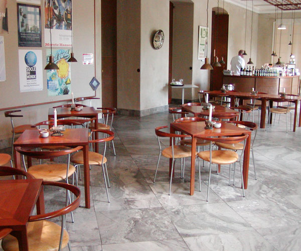 館内のカフェ。ウェグナーの椅子が使われています。 |