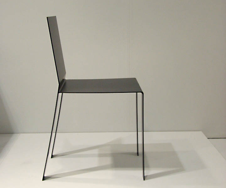 1年生Mick Bornの椅子LINE。スケッチで描く様なシンプルな線から考え出したそうです。初日にあるトップデザイナー(北欧デザインの最先端にいる)からいきなり商品化を持ちかけられました。そこから一気に評判になり、インテリア誌や芸大の学生がこれだけを見に来るほど。もちろんミラノサローネ選抜にも選ばれています。後ろ脚と座面の接合部の強度(現在はプロトタイプ)が気になりますが、今後の展開が楽しみです。 |