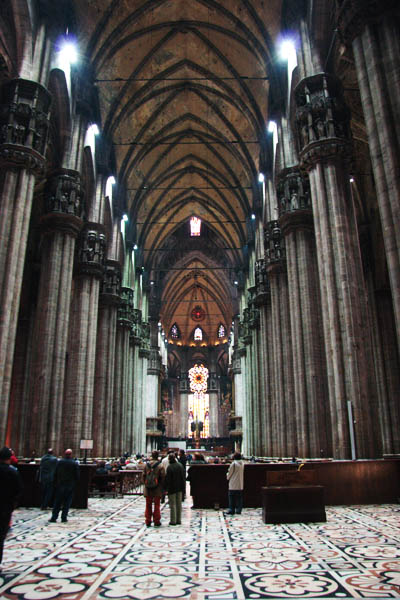 そしてDuomo(カトリックの教区を司る大聖堂の事。聖マリア大聖堂、カテドラル、ドームとも言う)の中へ。ケルンのドームも大きかったけど、ここも圧倒される大きさ。よく建てたなあ、と感心してしまいます。 |