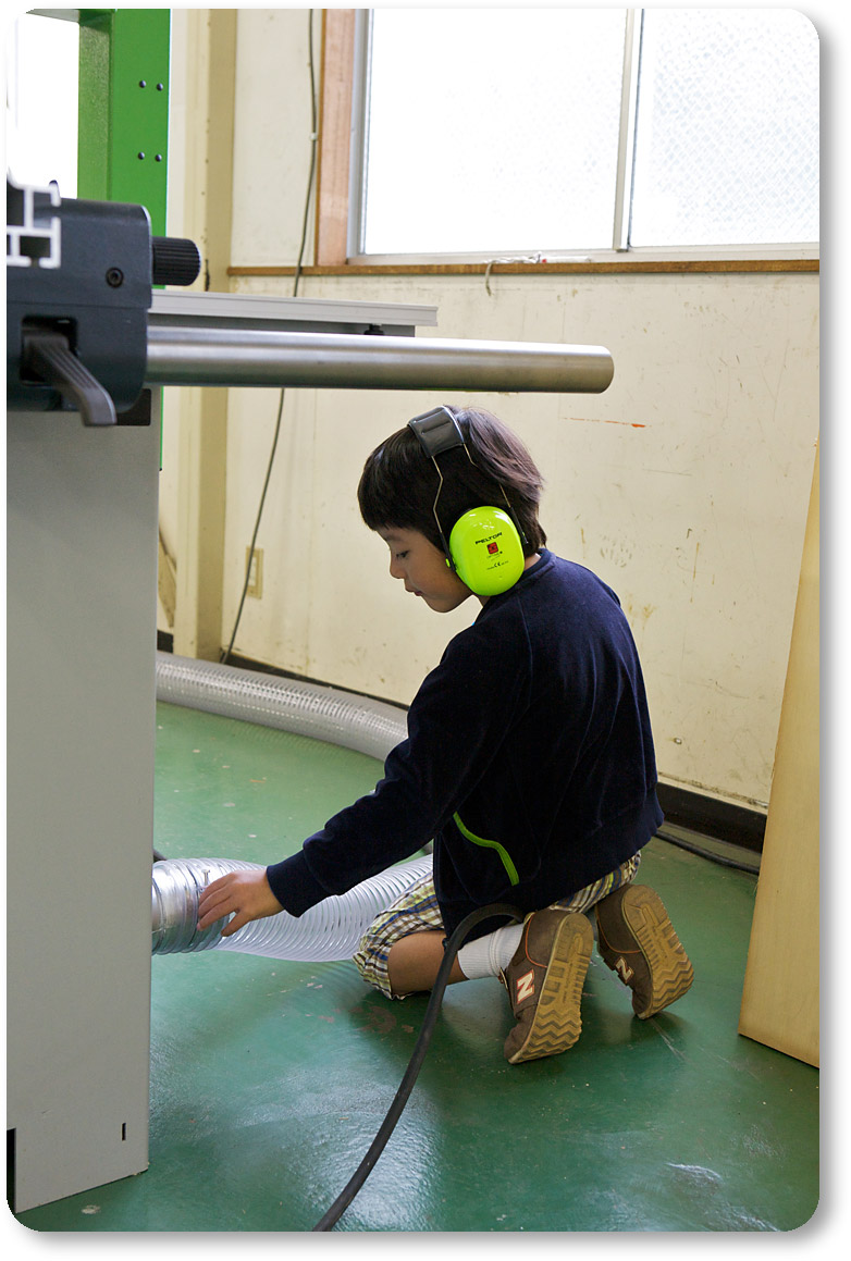設置例。削り屑を綺麗に吸い込んでくれます。