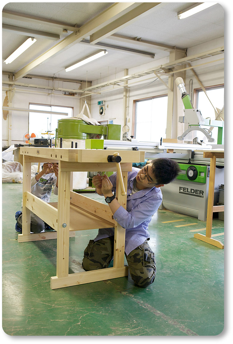 まずは、自分たちの作業台を組み立てるところからスタート。ウォーミングアップです。ここで各々の特徴が分かったりもしますね。